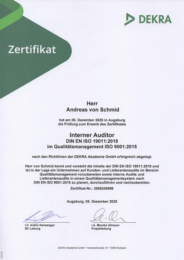 Vollintegration, begleitete Integration und/oder langfristige Betreuung als Managementbeauftragter nach erfolgreicher Zertifizierung. Managementsysteme sind die Grundvoraussetzung für Vereinheitlichung und Standardisierung. Sie bilden die Basis eines kontinuierlichen Verbesserungsprozesses.